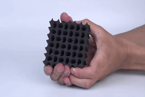 いかがだったでしょうか。Auxetic構造の変形メカニズムの肝は回転または座屈にあること、またそれらを実現する多様な幾何形状があること、さらにプラトー特性をはじめとするAuxetic構造の特徴を活かした実用化が進められているといった魅力をお伝えできたのなら幸いです。3Dプリンタをお持ちの方は印刷してみて、実際につぶしてみると一層面白いと感じられるかもしれません。最後までお読みいただき、ありがとうございました。